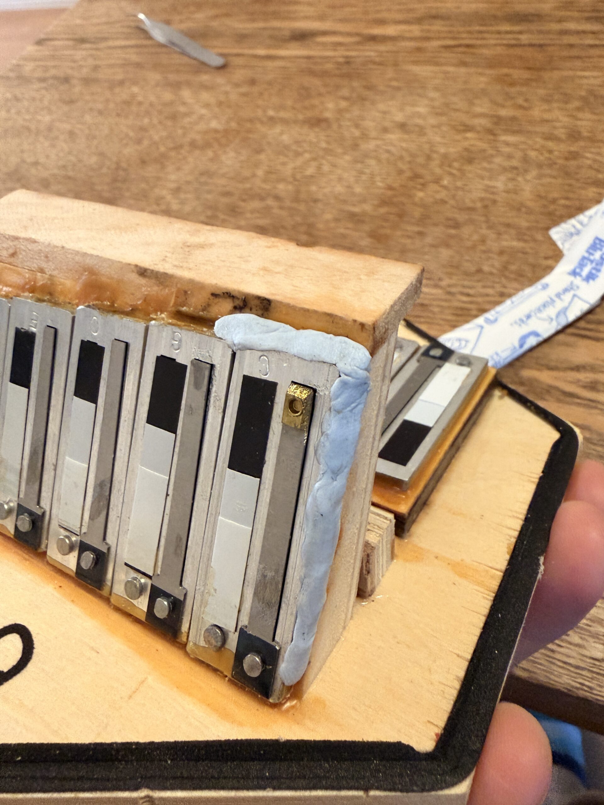 弊社の Furze コンサーティーナにおいて、剥がれ落ちたリードを再度固定する修理を行いました。